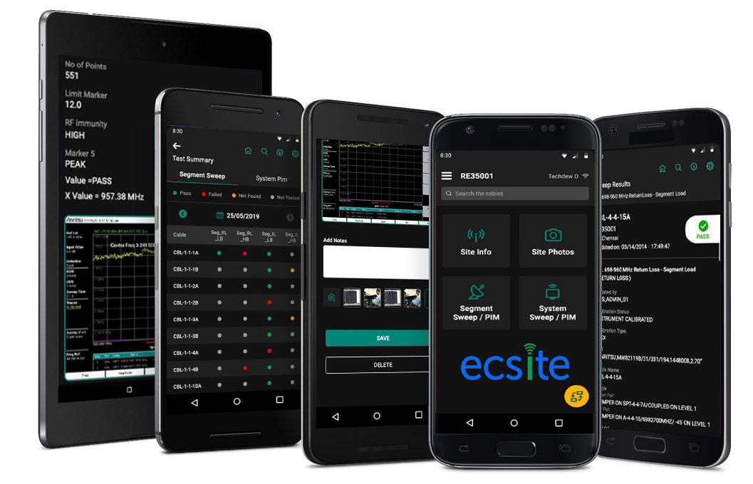 ECSite is an end-to-end SaaS platform for fully automated site-closeout for iDAS venues, oDAS/small cells and macro sites. Can you test all of your cables (coax, fiber, CAT6) and antennas, control your test instruments, take photos and videos, fill out checklists, take notes, all on one app via your mobile device? With ECSite solution, you can.