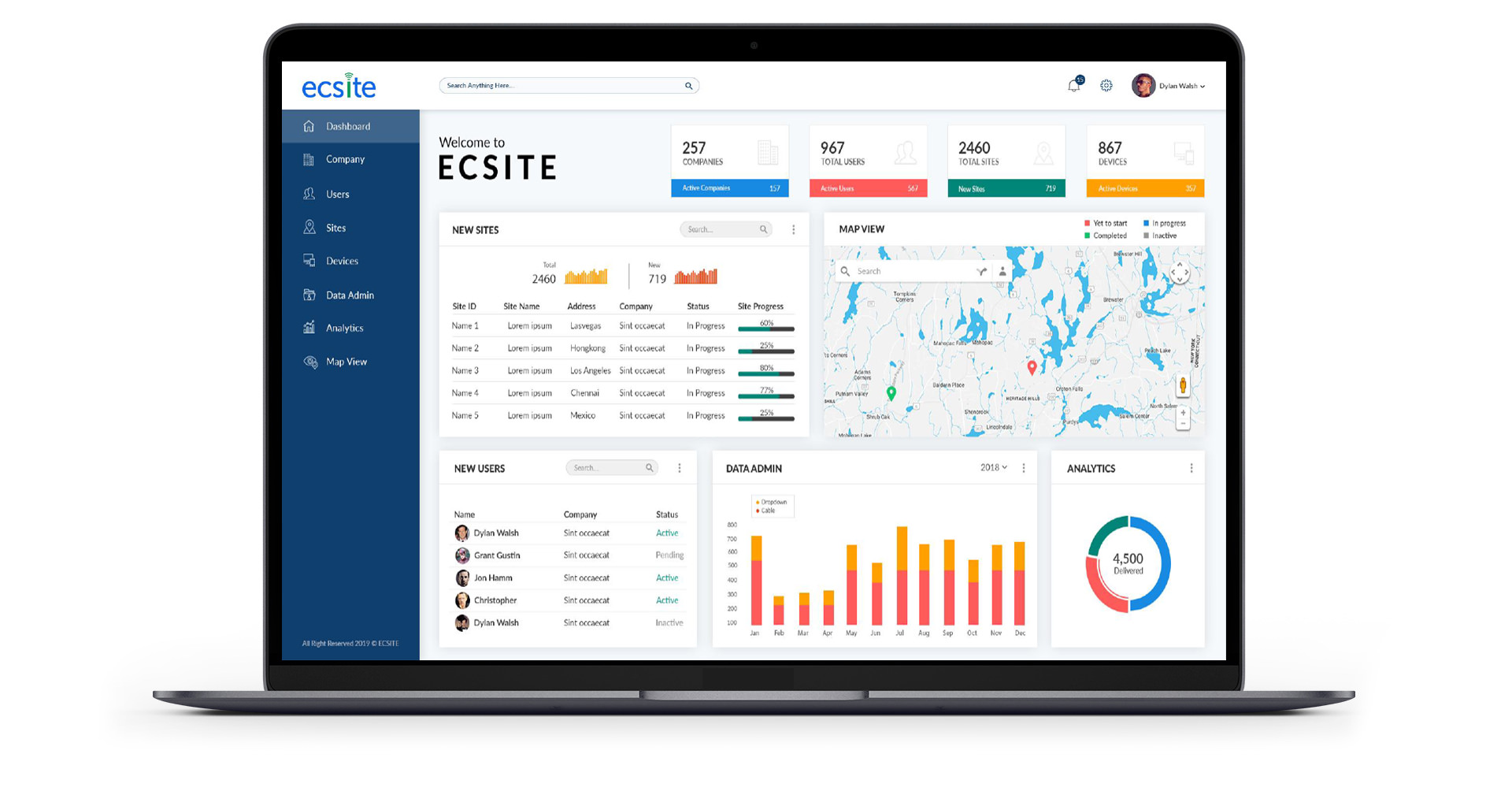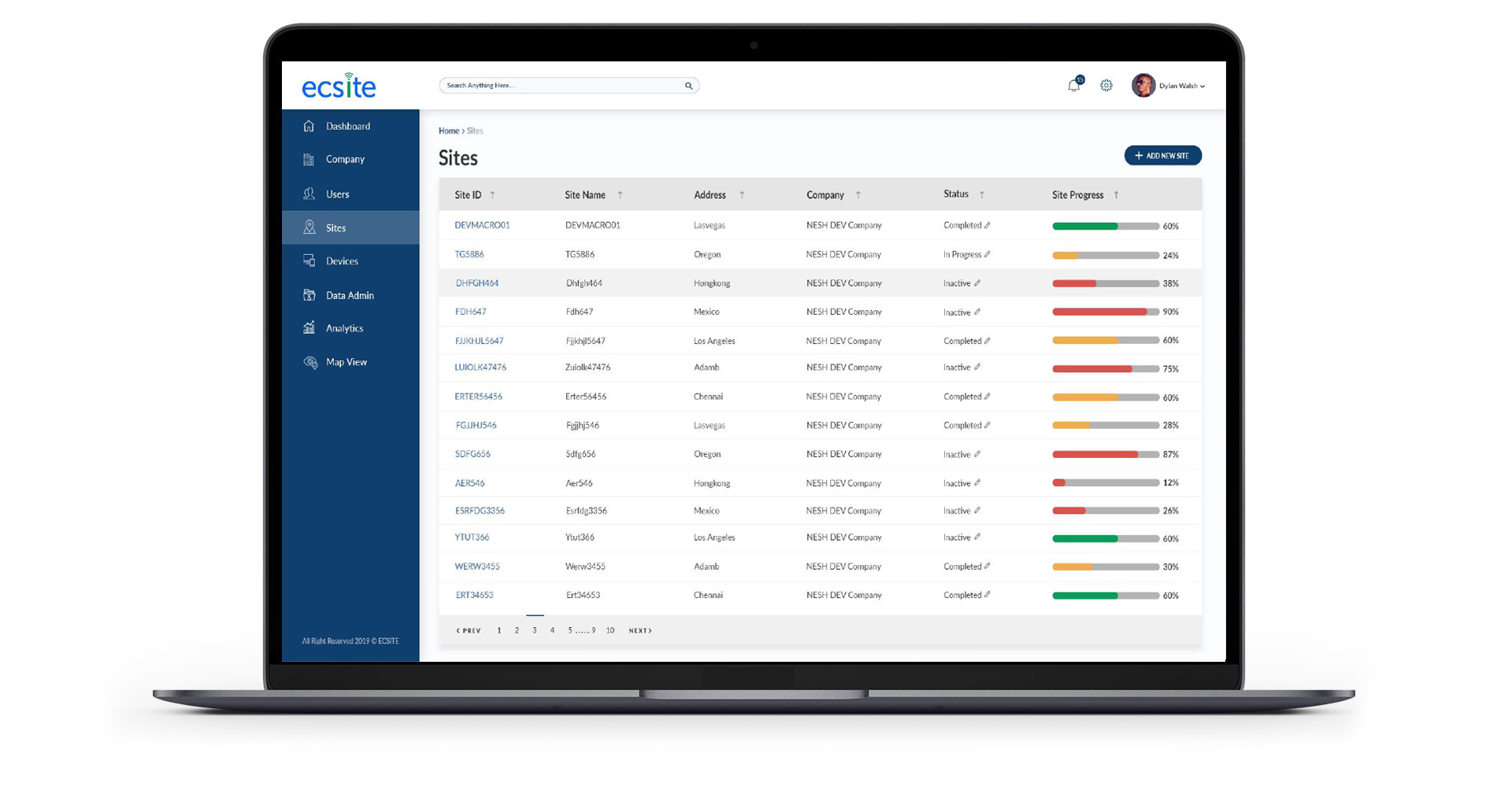 ECSite offers a mobile app and a cloud service for managing data collection, checklists and verification through various phases of site construction and maintenance. It has been adopted by the major 3POs and has been successfully deployed for use from small malls to large stadiums to small cells.